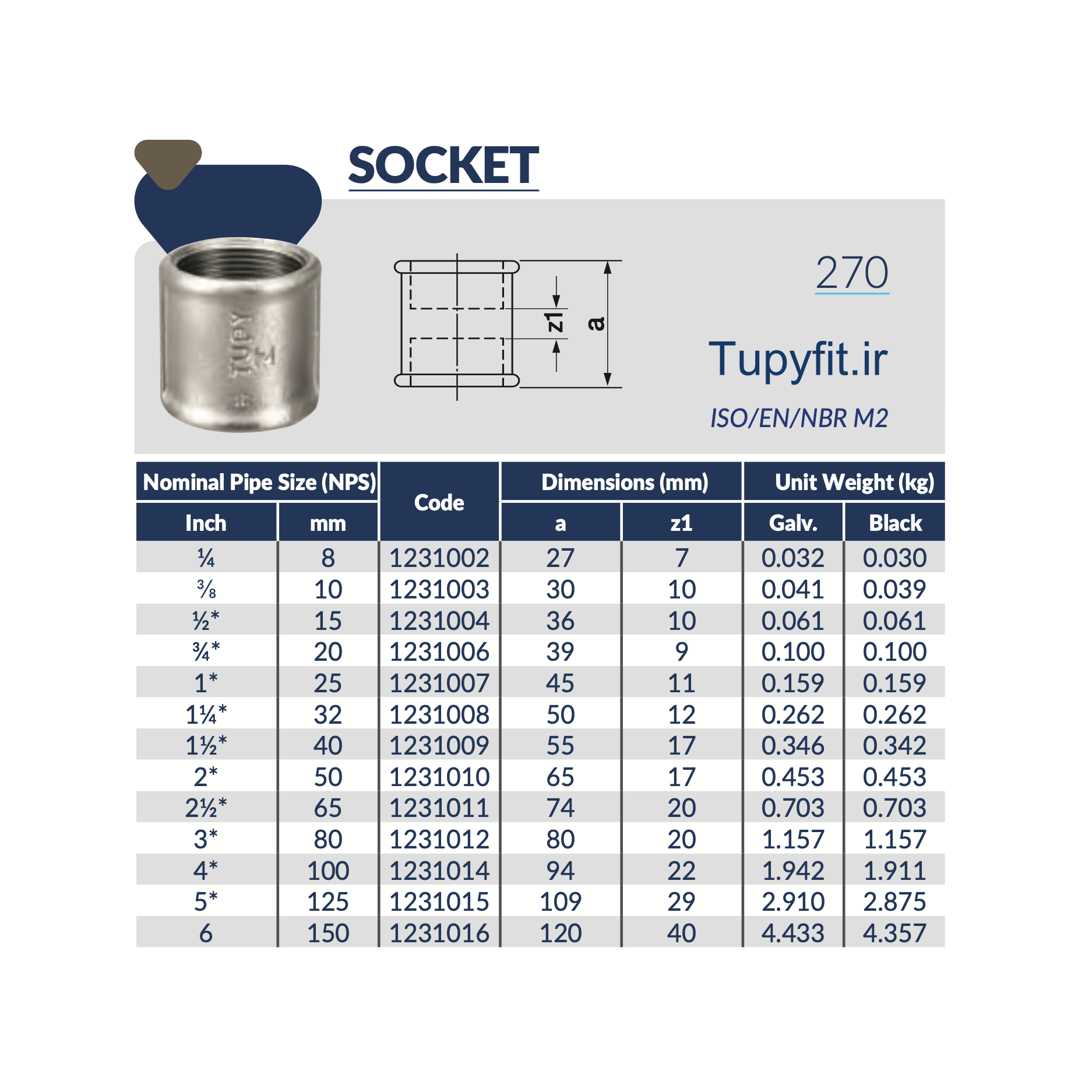 بر اساس استانداردهای ABNT NBR 6943، ISO 49 و EN 10242 برای انتقال سیالاتی مانند آب، بخار، سوخت، روغن هیدرولیک، هوای فشرده و گازها طراحی شده است. بوشن توپی برزیل در ابعاد مختلف و از چدن چکشخوار سیاه با فرمول اختصاصی Tupy مطابق استاندارد ABNT NBR 6950 تولید میشود.